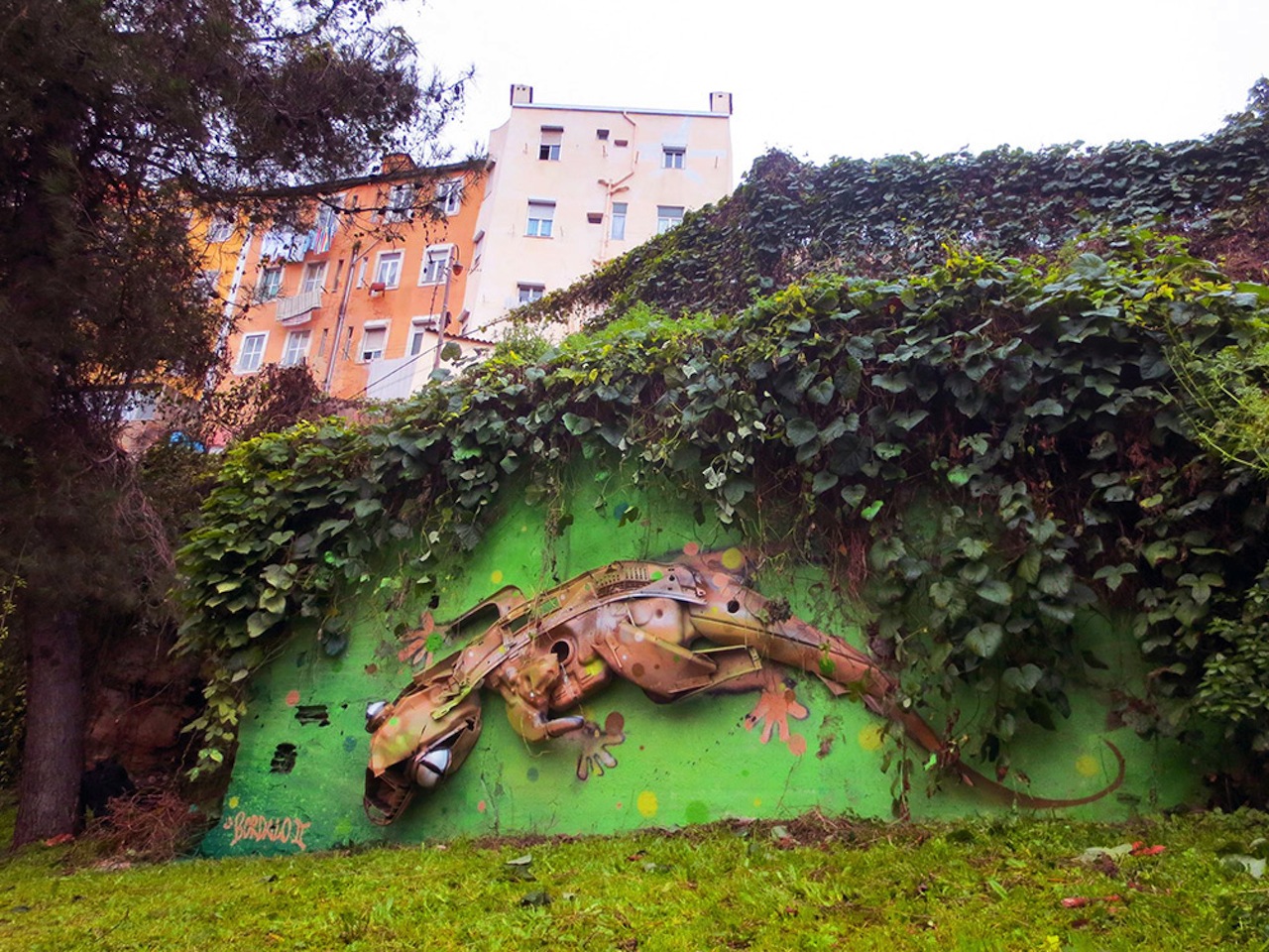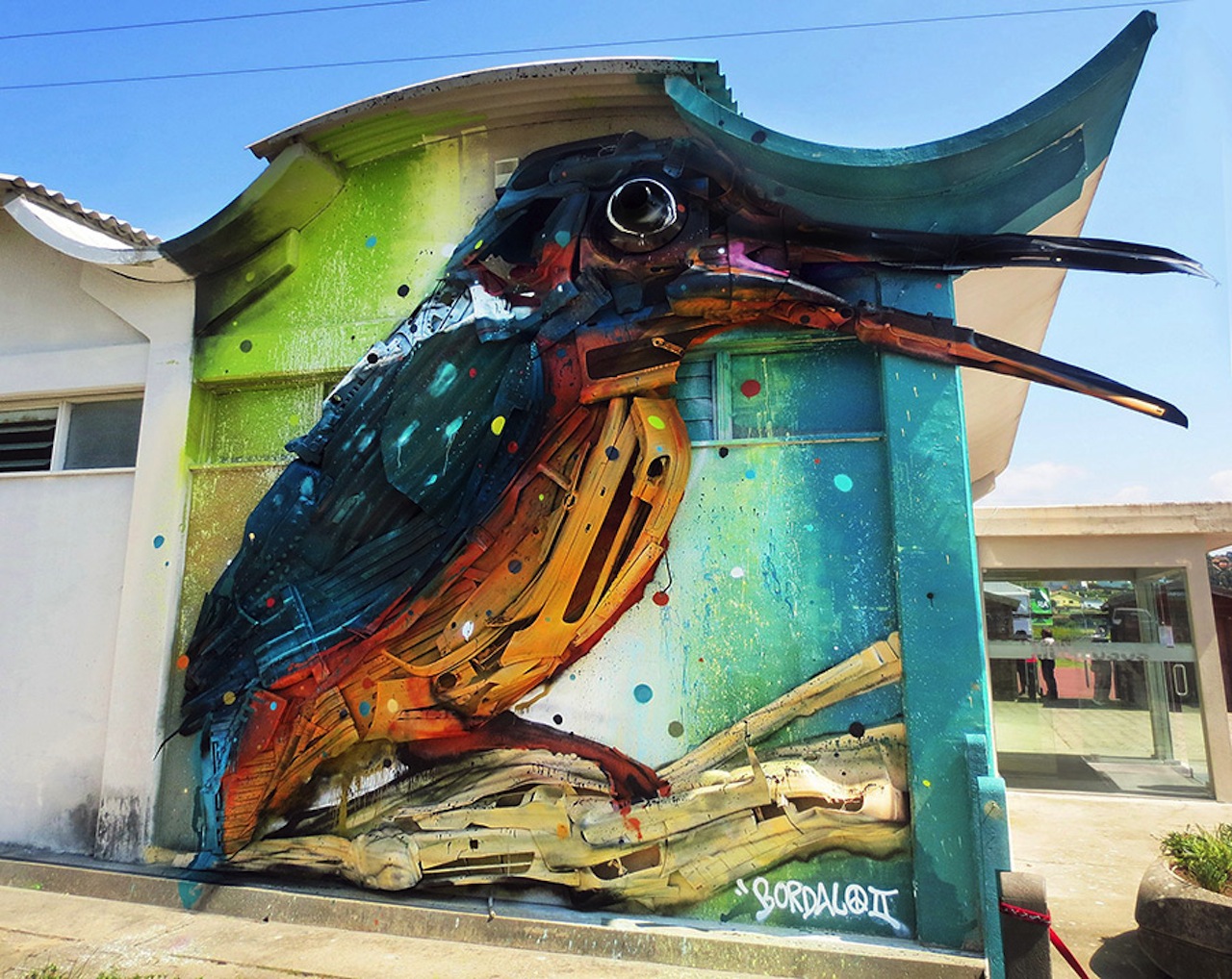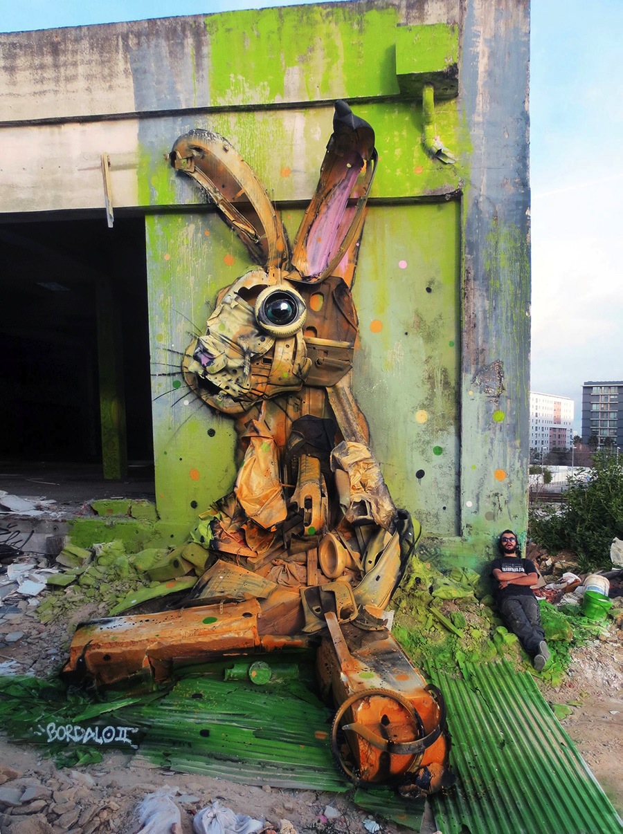 Portekizli sanatçı Artur Bordalo, hırdavat ve çöplerden yaptığı sanat çalışmasıyla dikkatleri topluyor. Sokaktaki çöp ve hurdaya çıkacak şeyleri bir araya getirerek büyük hayvan figürleri oluşturan Bordalo, bir yandan da önemli mesajlar vermeye çalışıyor.