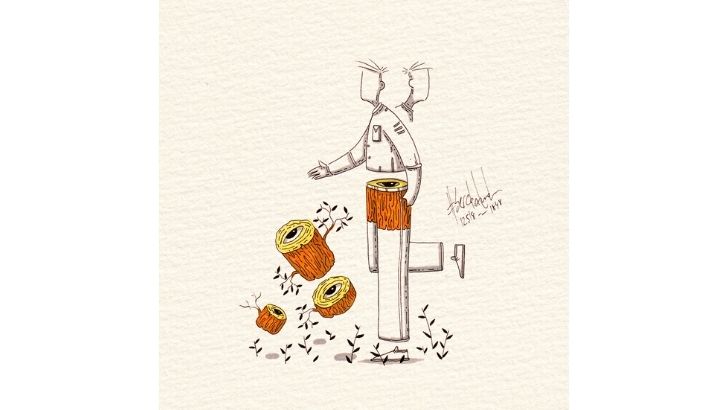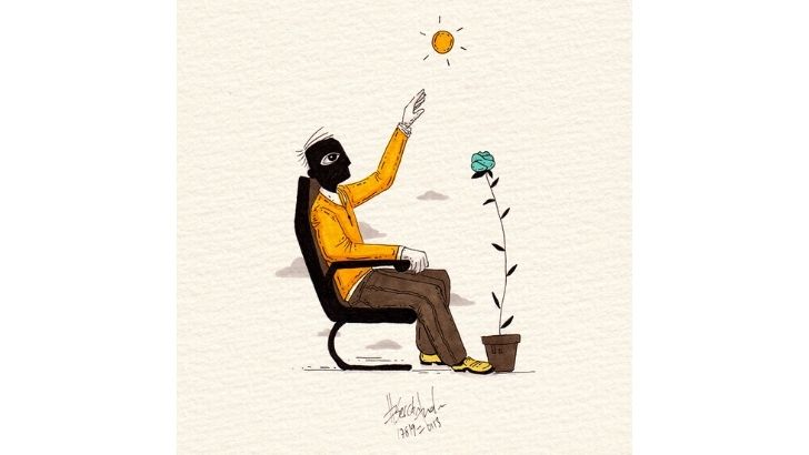 Sercan Tunalı: Elbette oluyor. Söylediğim her şeyi yapamıyorum, insanız sonuçta; mükemmeli hayal eder ona dokunamasak da sadece yaklaşabiliriz. Bazı çizimlerimle tartıştığım olmuştur. Savunduğu şeylere katılmadığımı hissettiğim hatta ondan hoşlanmadığımı hissettirdiğim… Mesela böyle bir çizim bir sergimde en beğenilen resim olmuştu. “Sonradan ona hak verdim, aslında haksızlık etmişim” diye düşünmüştüm. Belki de komik böyle düşünmek ama bir karakter verdiğinizde daha güçlü bir etki yaratabiliyorsunuz.