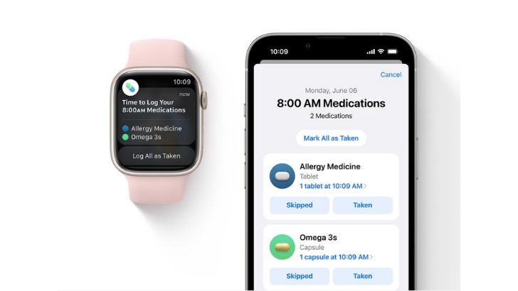 Apple Watch ve iPhone’daki yeni İlaçlar deneyimi kullanıcıların ilaçları, vitaminleri ve besin takviyelerini kontrol ve takip etmelerine yardımcı oluyor. Bu deneyim sayesinde kullanıcılar ilaç listeleri hazırlayıp programlar ve anımsatıcılar oluşturabiliyor ve Sağlık uygulamasında ilaçlarıyla ilgili bilgileri görebiliyor. Apple Watch’taki İlaçlar uygulaması kullanıcıların ilaçlarını, diledikleri zaman, diledikleri yerde rahat bir şekilde ve gizlilikten ödün vermeden takip etmelerini kolaylaştırıyor.