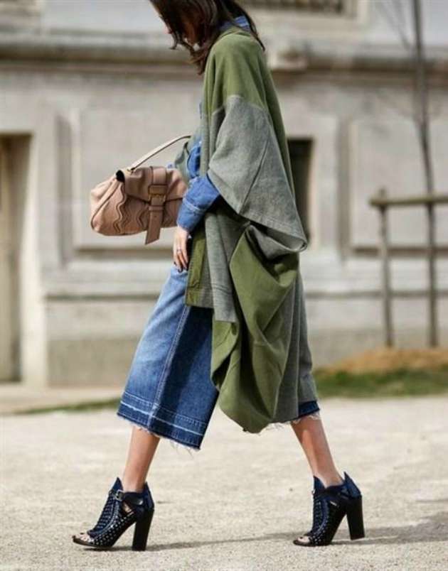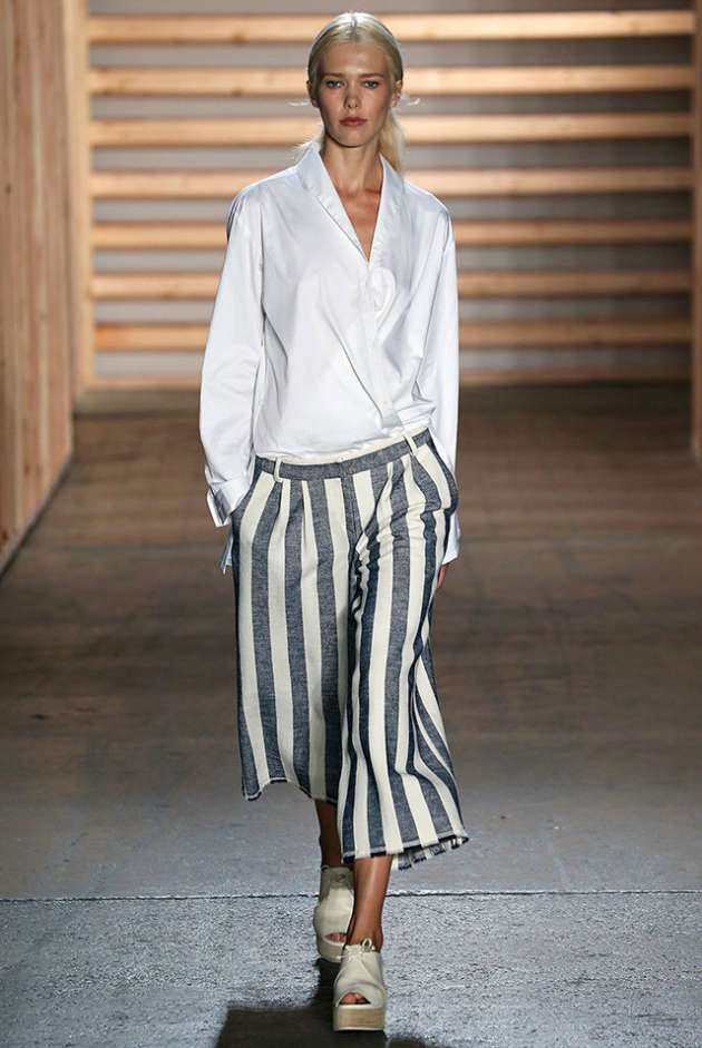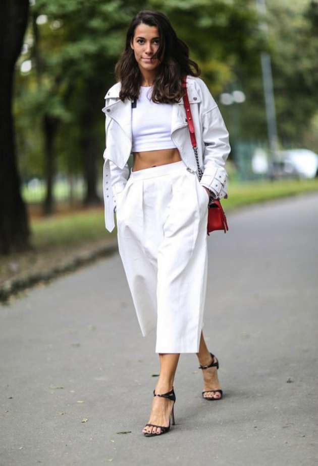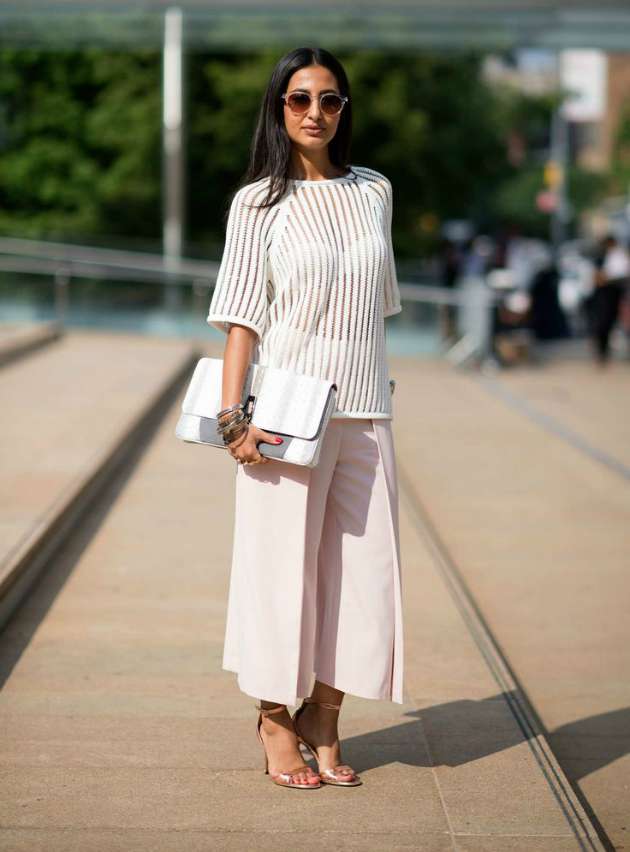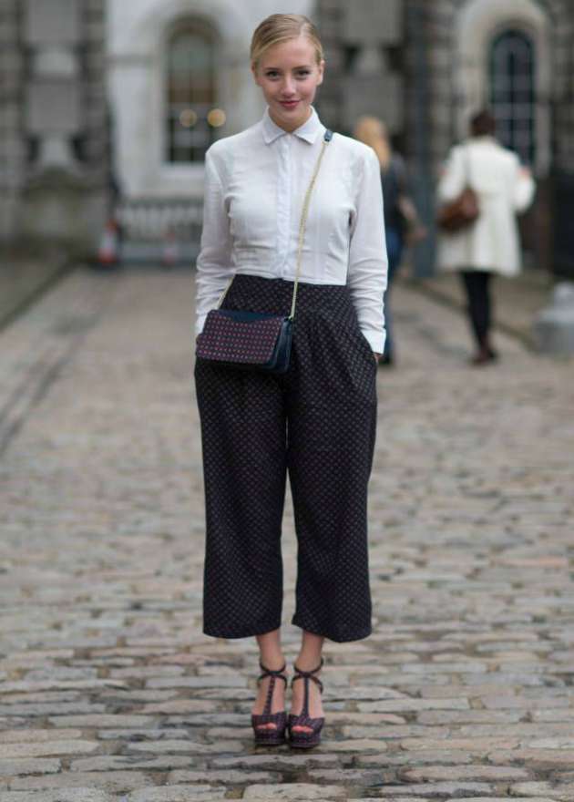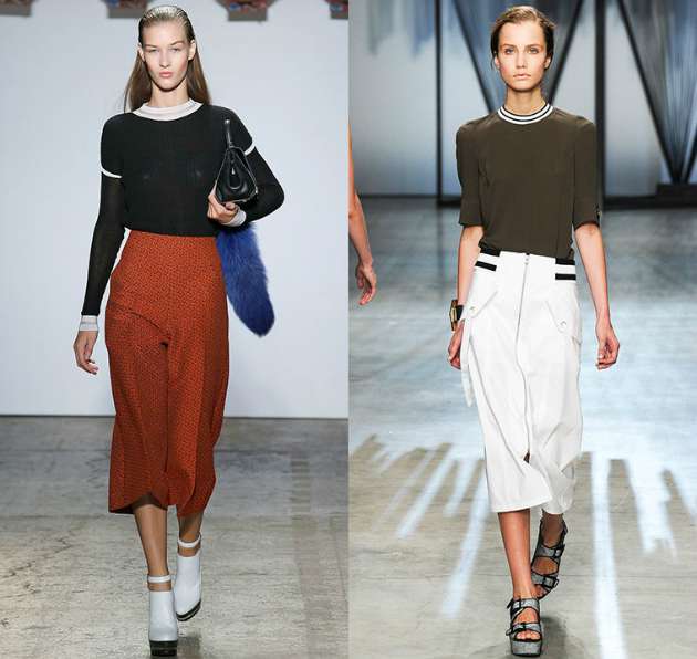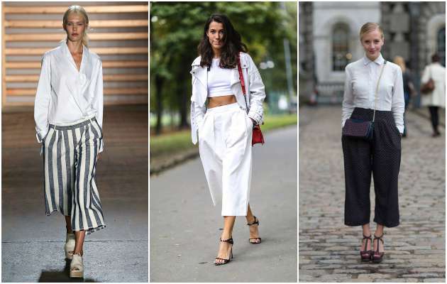 Pantolon eteğimizi hemen diz altında bitecek boyda tercih edecek olursak, klasik bir görünüm için yüksek topuklu ayakkabılarımız, gömlek veya klasik bluzlarımız ile kombinleyebileceğimiz gibi, daha spor tarzda kullanmak istersek bu sezonun diğer bir önemli trendi platformlu spor ayakkabılarımız ile kombinleyebilir ve yine bir diğer önemli 2015 ilkbahar yaz trendimiz olan denim dokunuşta gömlek veya bluzlarımız ile tamamlayabiliriz.