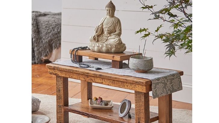 Feng Shui prensiplerine göre düzenlenmiş bir meditasyon köşesinde yapacağınız diğer şey evrendeki 5 elementi içeren bir altar hazırlamaktır. Ahşap elementini eklemek için, canlı çiçekler, bitkiler yerleştirebilir, mobilyalarınızı ahşap ağırlıklı seçebilirsiniz. Eğer alanınız bir meditasyon odasından çok minik bir köşe ise, belki ahşap bir sehpa üzerinde altarınızı kurmakla işe başlayabilirsiniz.