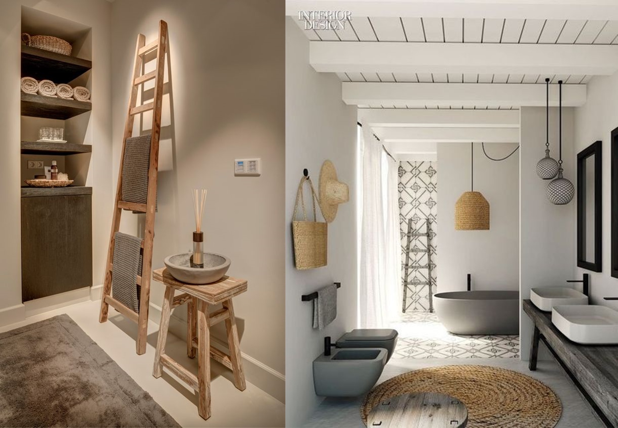 Daha çok yazlık evler veya dağ evlerinde tercih edilse de şehirdeki evinizin banyosuna da ahşaplar ve hasırlar kullanarak rustik bir hava katabilirsiniz. Duvara yaslayacağınız ahşap bir merdiveni havluluk olarak kullanmak fikri bile ortamı değiştirmeye yeterli olabilir.