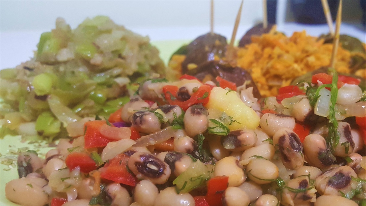 Pırasa yemeğini sevmeyenlere alternatif ‘Pırasa Kavurması’, protein barı ‘Börülce Salatası’ ve tadına doyamayacağınızı düşündüğüm ‘Havuçlu Girit Kebabı’. Dengeli, sağlıklı ve kısa sürede hazırlanabilecek, gerçekten çok pratik bir vegan lezzet tabağı.