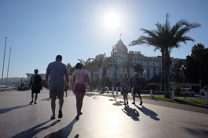 6.5 km uzunluğundaki sahil şeridi, şehrin kalbini oluşturuyor. Promenade des Anglais ismindeki yürüyüş yolunu İngilizler yapmış. 1822’de portakal hasadı kötü gidince işçiler işsizlikle karşı karşıya kalıyor. Burada bulunan İngilizler de bu yolu yaptırarak işçilere iş sağlıyor. Promenade des Anglais şu an Nice’in en popüler caddesi. Ünlü otel Le Negresco da bu yol üzerinde. Otel birinci sınıf bir sanat koleksiyonuna sahip olmasıyla ünlü. Moretti, Dali gibi pek çok ünlü sanatçının eserleri, nadir antikalar ve tablolar otelin iç mimarisinin bir parçası.