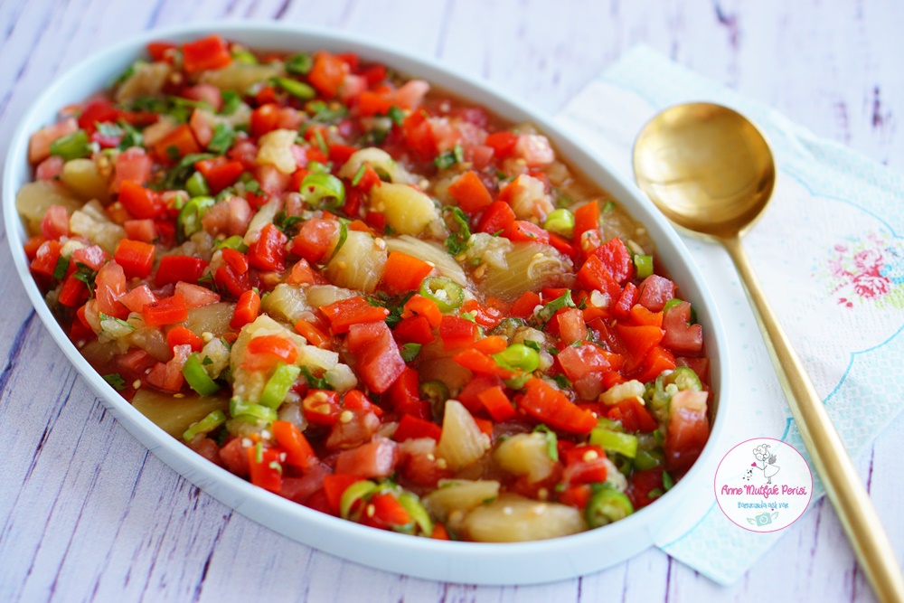 Domatesli patlıcan salatası az malzemeyle kısa sürede hazırlayabileceğiniz harika bir salatadır. Domatesli patlıcan salatasını tek başına tüketebileceğiniz gibi diğer yemeklerin yanında da tüketebilirsiniz.