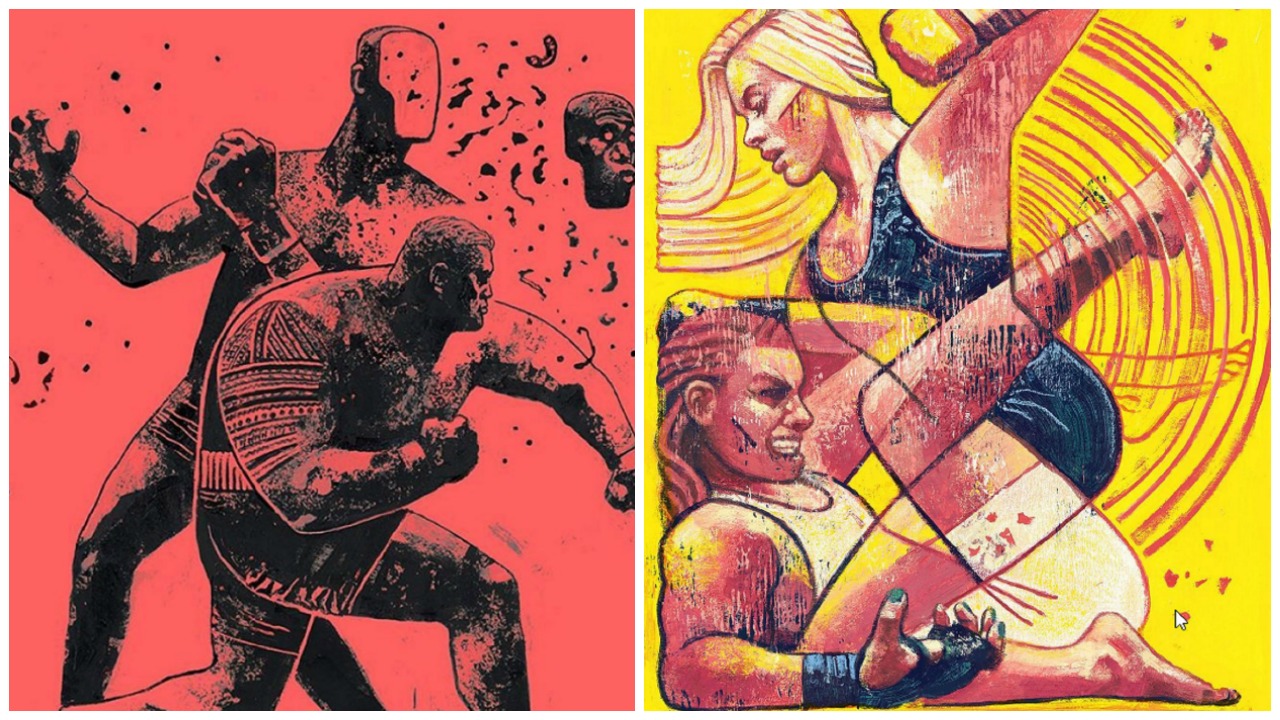 Dövüş sporlarına olan ilgisini yaratıcı üretimle birleştirmesi ve konu edinmesi açısından kendimi ayrıca yakın hissettiğim illüstratör Gian Galang, kendine has bir tarzla popüler UFC dövüşçüleri dahil pek çok sporcunun çizimlerini üretiyor. Instagram hesabı için buraya tıklayabilirsiniz. Fightland tarafından da yer verilen bu illüstrasyonlar arasında favorimlerinden birisi de şu:
