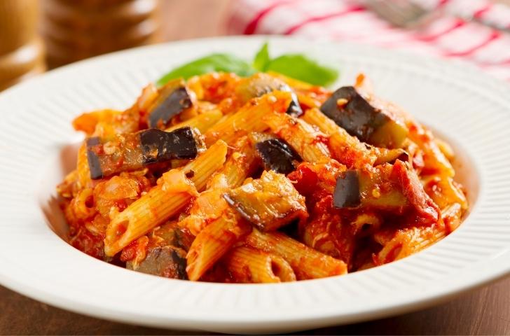 Domates ve patlıcanlı makarna