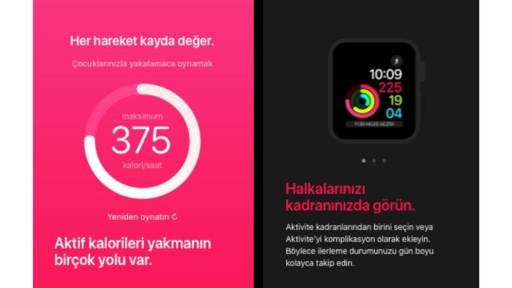 Apple Wacth’un hareket halkaları hem farkındalığınızı artırıp hem de daha sağlıklı bir gün geçirmeniz konusunda sizin en iyi takipçiniz. Aktivite halkalarını tamamlayarak daha sağlıklı bir gün geçirmek o kadar basit ve eğlenceli bir hale geliyor ki, bunu en sevdiğiniz alışkanlıklarınız içine kolaylıkla alıyorsunuz. İşte Apple Watch’taki Aktivite uygulamasının ardında bu fikir yatıyor.