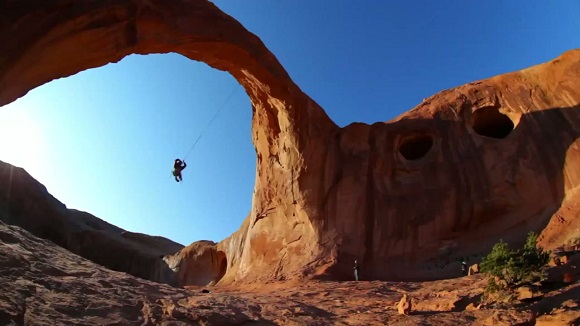 Bungee jumping’ten sıkılmış, daha heyecanlı bir şeyler arayan beş genç tarafından, tehlikesine karşın pek fazla koruma önlemi alınmadan gerçekleştirilmiş, dünyanın en büyük rope swing deneyimi olma özelliğini taşıyan bu video karşısında sakin kalmak neredeyse imkansız.