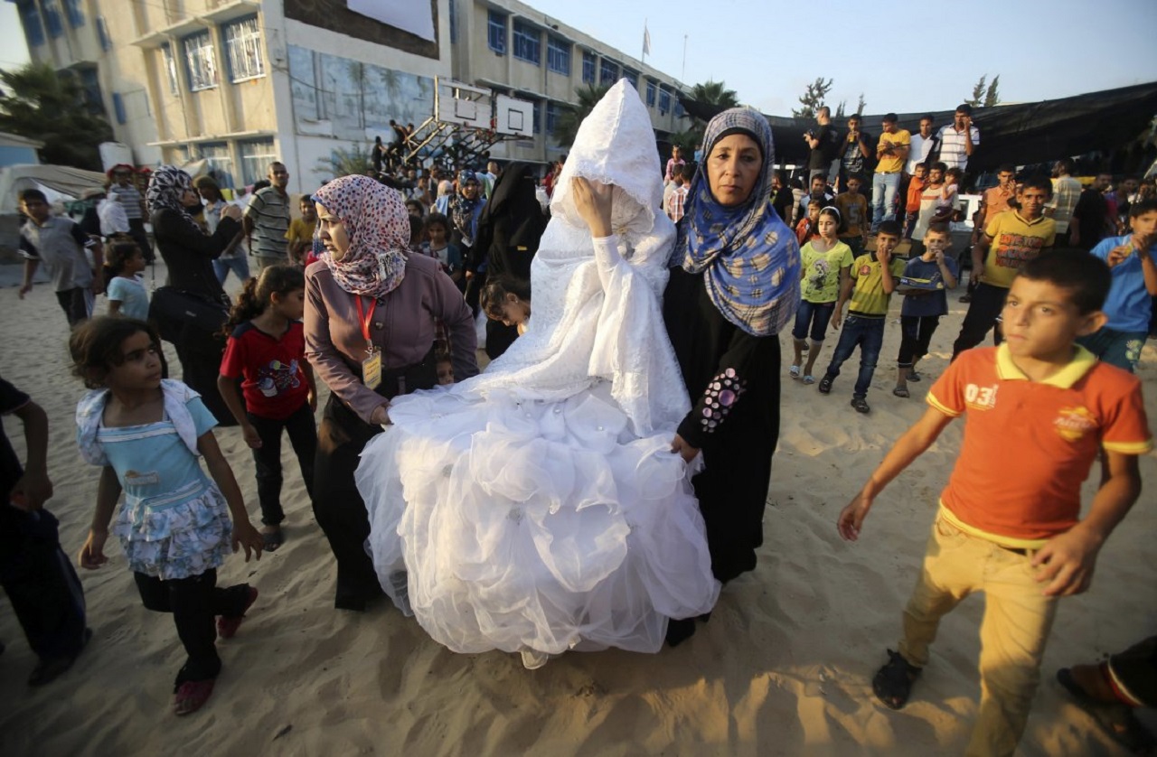 Düğün gününde Filistinli gelin çarpıcı beyaz bir elbise giyiyor. Beyaz renkli gelinlik, gelinin annesi tarafından elle işleniyor bu sayede gelinlik özgün bir hale getiriliyor.
