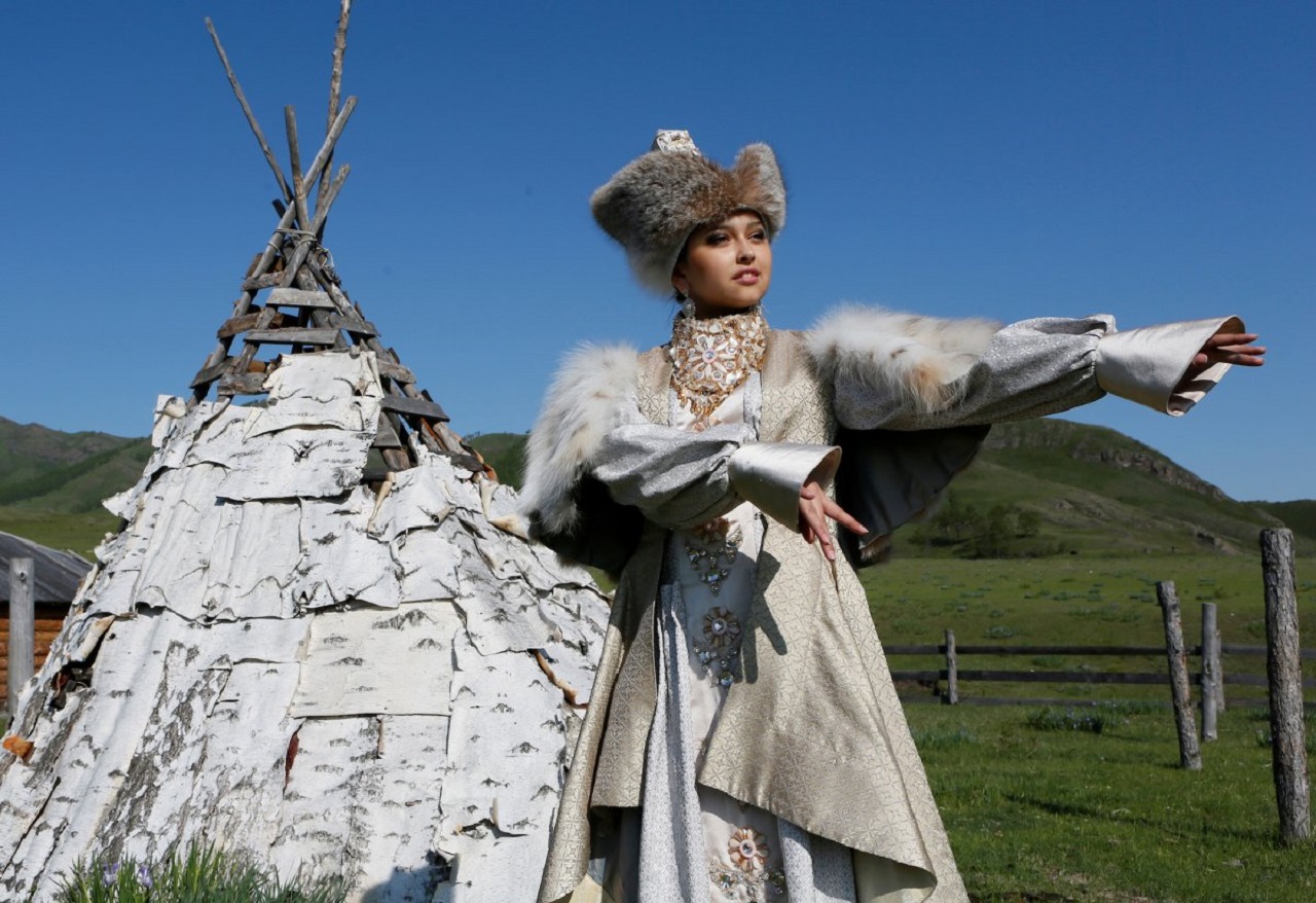 Rusya’da yaşayan Khakas (Hakasya) halkı arasında geleneksel gelin kıyafetleri, dondurucu soğuklarda gelinlerin ısınabilmesi için bir yün şapkadan ve ağır kürklü bir kaftandan oluşuyor.
