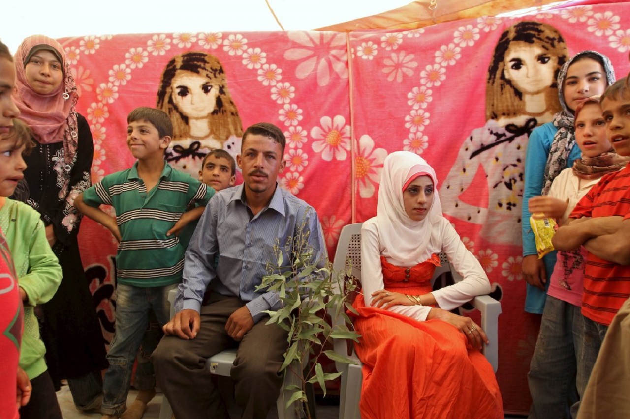 Suriyeli gelin, ailesi tarafından kendisine verilen uzun kollu bir elbise giyiyor ve altın takılar kullanıyor. Geleneklere göre genelde gelinlikler renklidir, ancak bu zamanla değişmiş ve günümüzde çoğu gelin artık beyaz gelinlik tercih ediyor.