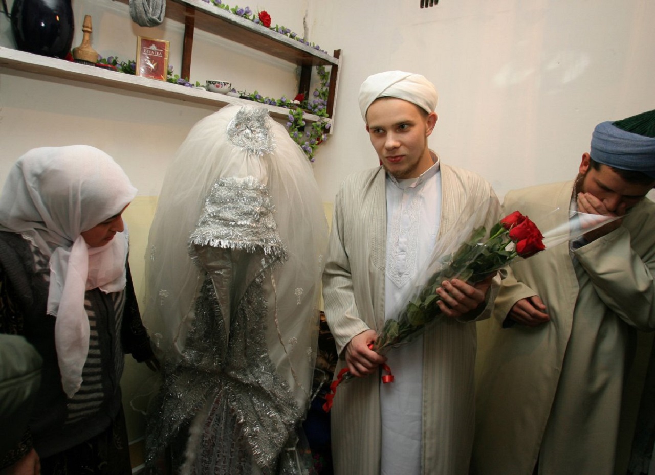 Çeçenistan’da tevazuyu vurgulayan bir kıyafet yasası uygulanıyor. Gelinler onları baştan aşağı örten beyaz bir elbise giyiyor. Metal bağlantı elemanları, kıyafetlerini süslüyor ve bellerine anneden kızına miras olarak geçen bir gebelik kemeri bağlanıyor.