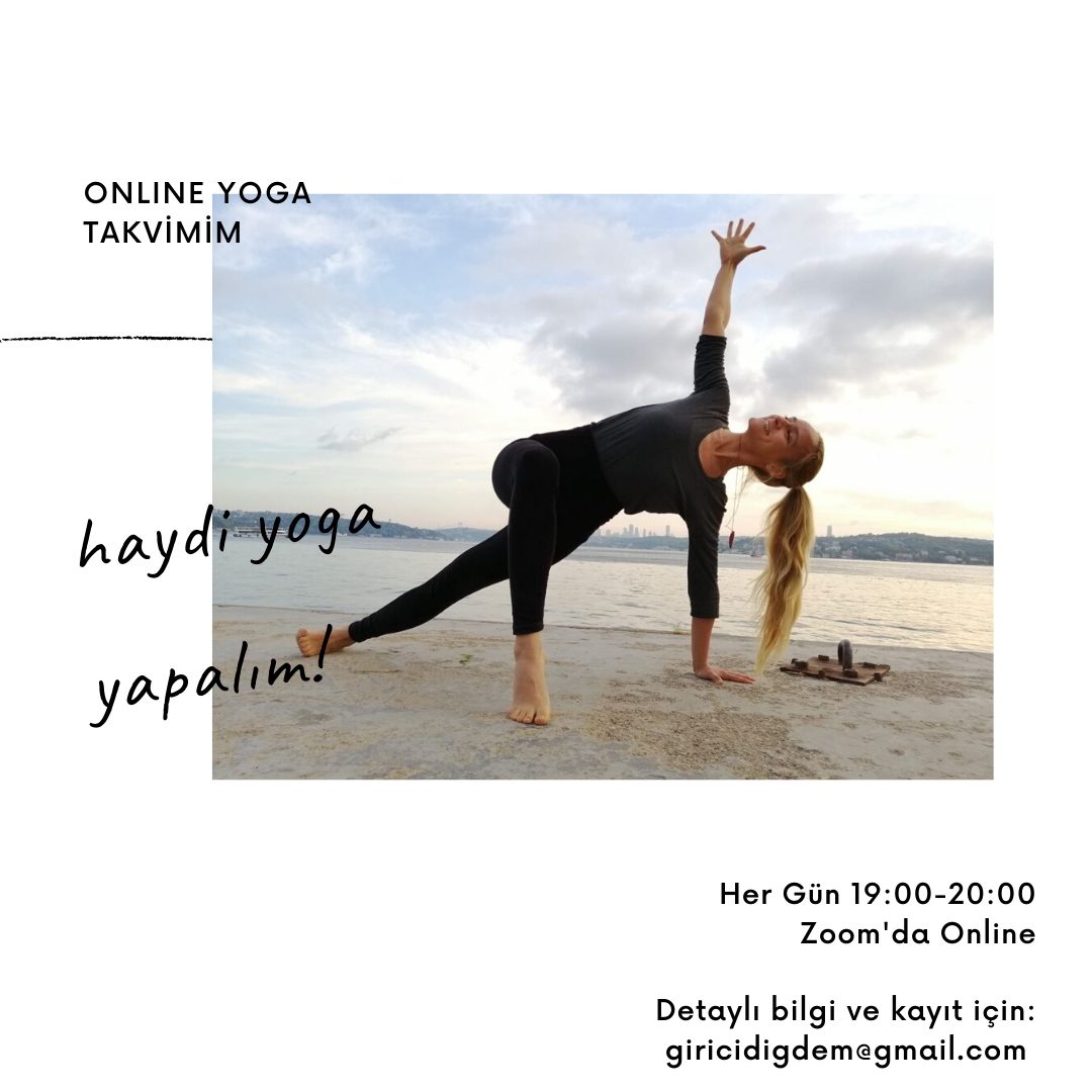 Hafta başından beri online yürüttüğüm yoga derslerimi düzenli bir takvime oturttum. Her gün 19:00-20:00 saatleri arasında Zoom’da online buluşma için sizi bekliyor olacağım. Bu buluşmalarda yoga, meditasyon ve nefes çalışacağız.