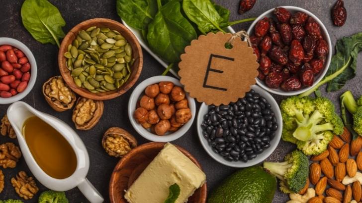 Neredeyse çoğu besinin içerisinde belli miktarda E vitamini bulunmaktadır, özellikle ay çekirdeği E vitamini açısından diğer besinlere göre daha zengindir. Bitkiler ve kuruyemişler içeriğinde yeterli oranda E vitamini barındırır. Örneğin, günde bir avuç fındık yemek günlük E vitamini ihtiyacınızı karşılamanıza yardımcı olabilir. E vitamini içeriğine sahip diğer besinleri ise yumurta sarısı, soya, ton balığı, fındık, ceviz, portakal, mandalina olarak sıralamak mümkün. Ayrıca ıspanak, fıstık ezmesi, kanola yağı, kuşkonmaz, mango, buğday tohumu yağı, kivi ve domates besinlerinde de E vitamini bulunur. Ancak, alerji durumlarında bu besinlerin tüketilmemesi önerilir. Bu nedenle herhangi bir besin alerjiniz varsa dikkatli olmanız da ve doktorunuza danışmanız da fayda var.
