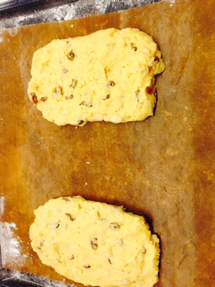 Hamurumuz kıvama gelince 2’ye böldük. Yağlı kağıdın üstüne 2 ayrı parça olarak yaya yaya şekil verdik. Ve 170 dereceye attık tepsiyi.