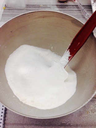 Aldık pudra şekerini; 2 yumurtayla birlikte havalı KitchenAid’imizde çırptık. Evde olanlar, rondoya talimsiniz. Ağzı kapalı bir şeyde çırpmanız gerekiyor ki üstünüz başınız pudra şekeri olmasın.