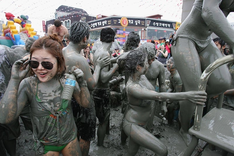 Güney Kore’nin Boryeong sahilinde kozmetik firmaları tarafından kullanılan ve cilde iyi geldiği düşünülen özel çamurun kullanıldığı Boryeong Çamur Festivali’nde, çamurdan kaydıraklar, çamur havuzları, çamur kayağı, canlı müzik ve akupunktur gibi birçok şeyin tadını çıkarabilirsiniz.