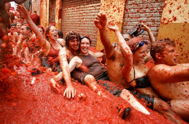 Oyun, eğlence, dans ve domates… İspanya’daki Domates Festivali’ne katıldığınız takdirde önce tanımadığınız insanlarla birbirinize domates fırlatacak, sonra da büyük kamyonlardan püskürtülen su ile duşunuzu alacaksınız.