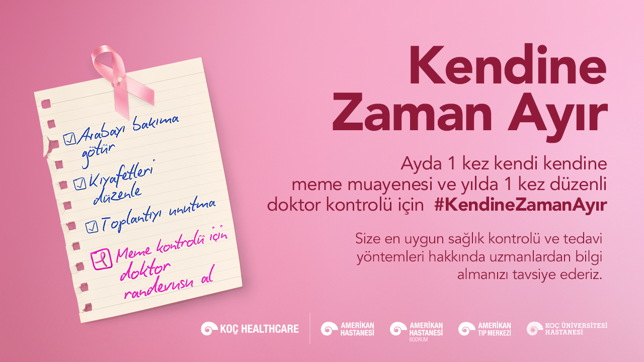 Amerikan Hastanesi, Meme Kanseri Farkındalık Ayı’nda #KendineZamanAyır diyerek farkındalık yaratan bir çağrıda bulunuyor. Günümüzün yoğun temposunda, çoğu zaman kendimize zaman ayırmayı ihmal ediyoruz; oysa ki sağlığımız söz konusu olduğunda atmamız gereken en önemli adım, kendimizi dinlemek, bedenimizdeki değişiklikleri fark etmek. Kendimize ayırdığımız bu zamanlarda ayda 1 kez yapacağımız kendi kendine meme muayenesi ve yılda 1 kez düzenli doktor kontrolü ile sağlığımız için büyük bir fark yaratabiliriz.