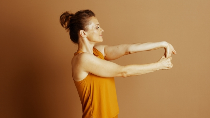 Bir kolunuzu öne uzatın, avuç içi yukarı bakacak şekilde diğer elinizle parmakları hafifçe geriye doğru çekin. 15–30 saniye bekleyin. Ardından avuç içini aşağı çevirip bu kez elinizi aşağı doğru nazikçe bastırın.