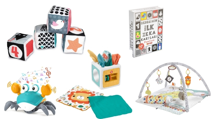 Bebeklerin zihinsel ve motor gelişimine katkıda bulunan oyun halıları ve eğitici setler, renkli, sesli ve dokunsal özelliklere sahip olmalıdır. Kolayca temizlenebilen ve taşınabilir modeller değerlendirilebilir. Yaş ve gelişim düzeyine uygun kitaplar, oyuncaklar tercih edebilirsiniz. Ayrıca oyun halısı ile bebeğinize daha güvenli ve özel bir alan da yaratabilirsiniz.