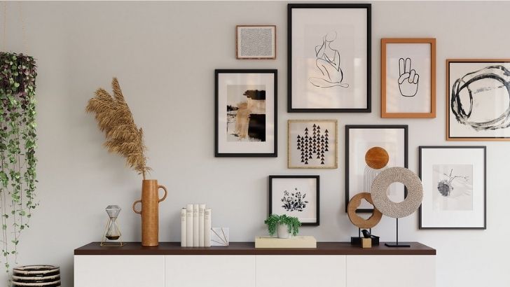 Duvarınızdaki tablolar, çerçeveler evinize karakter katar. Eğer bunları simetrik bir şekilde dizerseniz, devlet dairesine dönebilir. Birbirinden uyumsuz bir şekilde sergilerseniz, bu sefer de yaratmak istediğiniz o karakter duygusu oluşmaz. Öncelik bir ana tema belirlemelisiniz. Hangi çerçevenin etrafında şekillenmesini istiyorsunuz? Bu çerçeveyi merkeze yerleştirdikten sonra diğerlerini de etrafına yerleştirmelisiniz. Bunu simetrik bir şekilde yapmak zorunda değilsiniz. Asimetri, sıkıcılıktan kurtulmanızı sağlar. Farklı dokuları ve şekilleri bir arada kullanabilirsiniz. Örneğin bir renk teması belirleyip, buna göre bir yerleşim oluşturabilirsiniz.
