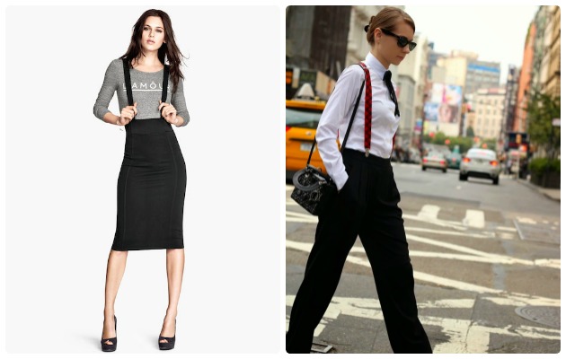 3)Pantolon Askıları- Erkeklere özgü olarak bilinen pantolon askılarını günlük stilinize uygulayarak beklenmedik bir hareket getirebilirsiniz. Hatta sadece pantolonlarla kullanmak yerine etek içeren kombinlere de renk katabilirsiniz. Günlük iş hayatında koyu ve tek renkleri tercih ederek hem stil sahibi hem de hafiften eklektik görünebilirsiniz. Güneş battıktan sonra gece hayatınız da limit sizsiniz. İster bol renkli, isterseniz simli, isterseniz neon pantolon askıları ile farkınızı gösterin.
