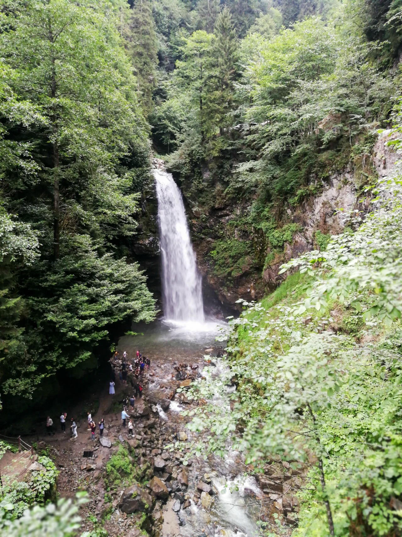 Araçlarla toplu olarak Ayder yolu üzerinde bulunan Tar Deresi Şelalesi’ne ulaştık, burada araçlardan inerek yaklaşık 2 km süren orta düzeyde dikliğe sahip patika ile şelaleye ulaştık. Bu şelalenin bir diğer adı da Bulut Şelalesi. Nasıl olmasın ki kırılımlı olarak 250 metre yükseklikten düşen bir şelaleye başka ne denilebilirdi ki? Yolda rehberlerimizin tavsiyesi şelaledeki suyu kesinlikle içilmemesi oluyor ki fotoğraflardan neden olduğunu anlamak zor olmasa gerek.