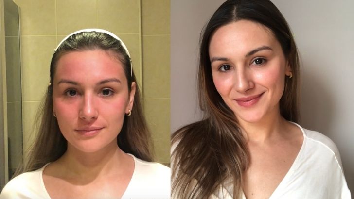 Mutfaktaki taze malzemelerle kullanılmak üzere özel olarak oluşturulan benzersiz, ipeksi ve pürüzsüz formülüyle ev yapımı maskeler için ultra nemlendirici bir baz görevi gören FOREO Imagination, FOREO Üçlü İnfüzyon Kompleksi sayesinde kullandığım malzemelerdeki aktif vitamin ve minerallerin emilimini kolaylaştırarak cildimin alt tabakalarına nüfuz etmesini sağlıyor. Bu anlamda, yukarıdaki fotoğraflarda yüzüme sürmüş olduğum, FOREO Imagination kullanmadan hazırladığım (soldaki görsel) ve FOREO Imagination kullanarak hazırladığım (sağdaki görsel), aynı içerikli maskeyi yıkadıktan sonra cildimdeki farklılığı da aşağıdaki fotoğraflarda görebilirsiniz. FOREO Imagination kullanarak hazırlamış olduğum maskeden sonra cildimin çok daha pürüzsüz, nemli ve aydınlık görünüyor. Ayrıca önceden maske bakımı yaptıktan birkaç dakika sonra cildim hızlıca kuruyup gerginleşirken (dolayısıyla ekstra nemlendirici sürmek zorunda kalırken) FOREO Imagination maske bazı kullanmaya başladığımdan beri maske sonrasında ekstra bir ürün sürme ihtiyacı da hissetmiyorum.