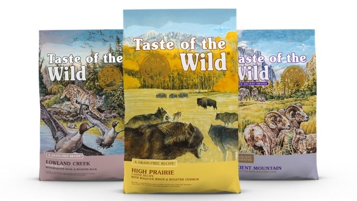 Bir başka aile şirketi olan Taste of the Wild, yaban domuzu, bizon, tütsü aromalı somon, kavrulmuş ördek, geyik eti ve Angus eti gibi benzersiz proteinleri kullanıyor.