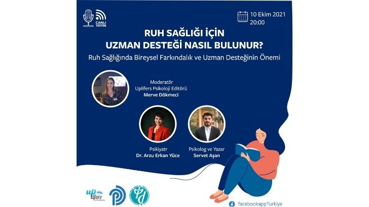 Dünya Ruh Sağlığı Günü kapsamında Türkiye’de ruh sağlığı konusunda farkındalığı artırmak amacıyla Facebook Türkiye sayfasında yayınlanacak bir etkinlik gerçekleştirilecek. Ekibimizden Uplifers Psikoloji Editörü Merve Dökmeci’nin moderatörlüğünde, Türk Psikologlar Derneği’nden Psikolog Servet Aşan ve Psikiyatr Doktor Arzu Erkan Yüce’nin konuşmacı olarak yer alacağı canlı yayının sonunda bir soru-cevap kısmı da olacak. Etkinlikte pandemiyle ilgili güncel ruh sağlığı konularından ve toplumda ruh sağlığı hizmetleriyle ilgili farkındalık oluşturulmasına yönelik çabalar ele alınacak. 10 Ekim Pazar günü saat 20:00’de gerçekleşecek yayını Facebook Türkiye sayfasından canlı olarak izleyebilirsiniz.