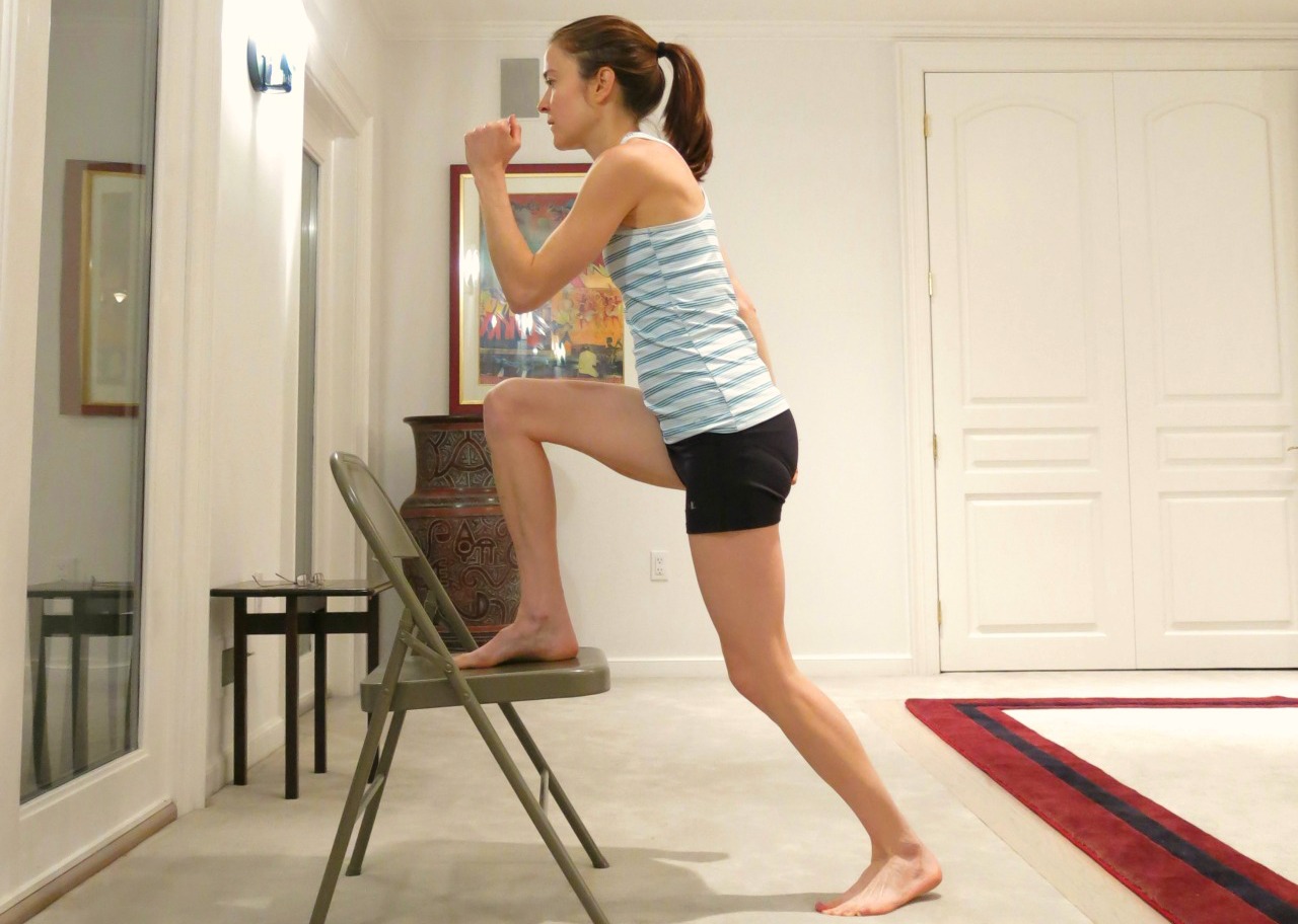 Bu egzersiz için alçak bir sandalye kullanmanız yeterli. Ayakta dik bir şekilde durun ve önünüzde bulunan sandalyeye bir bacağınızı atın, bu esnada karın kaslarınızı sıktığınızdan ve sırtınızın dik olduğundan emin olun. Doğru pozisyona geldikten sonra sandalyenin üzerine koyduğunuz bacağınızdan destek alarak bedeninizi yukarı çıkarın. Hareketi her iki bacakla 10-15 kez uygulayın.
