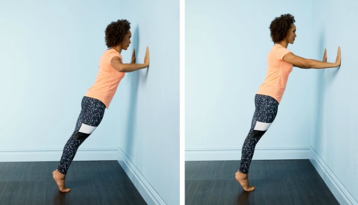 Ellerinizi duvara omuz hizanızdan biraz daha açık olacak şekilde duvara yaslayın. Eğimli bir şekilde durabilmek adına ayaklarınızı biraz daha geriye alın ve parmak uçlarınız üzerinde yükselin ve dirseklerinizi bükerek duvarı ittirin (şınav çekiyormuş gibi). Egzersizi 15-20 kez uygulayın, isteğe göre sayıyı zamanla arttırabilirsiniz. Bu egzersizdeki anahtar kelime; eğim. Ne kadar eğimli durursanız, egzersiz o kadar zorlaşır. İsterseniz sırt üstü 90 derecelik bir açıyla duvara yaslanabilir ağırlık toplarından da yardım alarak egzersizinizi bir üst seviyeye taşıyabilirsiniz.