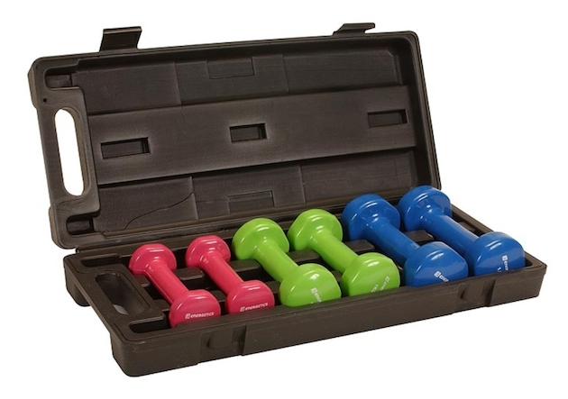 Farkı ağırlıklardaki dumblelar, bir spor salonunun en önemli ekipmanlarındandır. Kol, göğüs ve sırt kaslarınızı geliştirmek için evinizde mutlaka farklı ağırlıklarda dumble bulundurmalısınız. Energetics’in özel çantaya sahip bu seti, dumblelarınızı koyacak yer sıkıntısı yaşamadan evde spor keyfini yaşamanız için ideal. Dumble setine INTERSPORT ayrıcalığıyla buradan ulaşabilirsiniz.