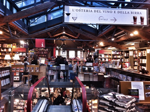 Burası hem restoran hem market, ancak Bolonya’daki ‘Eataly’ diğerlerinden farklı; çünkü bir kitapevinin içinde! Bir yanınızda kitaplar, bir yanınızda sos, makarna, şarküteri ve aralarına atılmış masalarda yemek yiyen müşteriler… Kesisnlikle en sevdiğim yer oldu diyebilirim. Her şey taze, her şey önünüzde ve en önemlisi alıştığınız düzenden farklı bir ortamda yemek yeme deneyimi yaşama durumu…