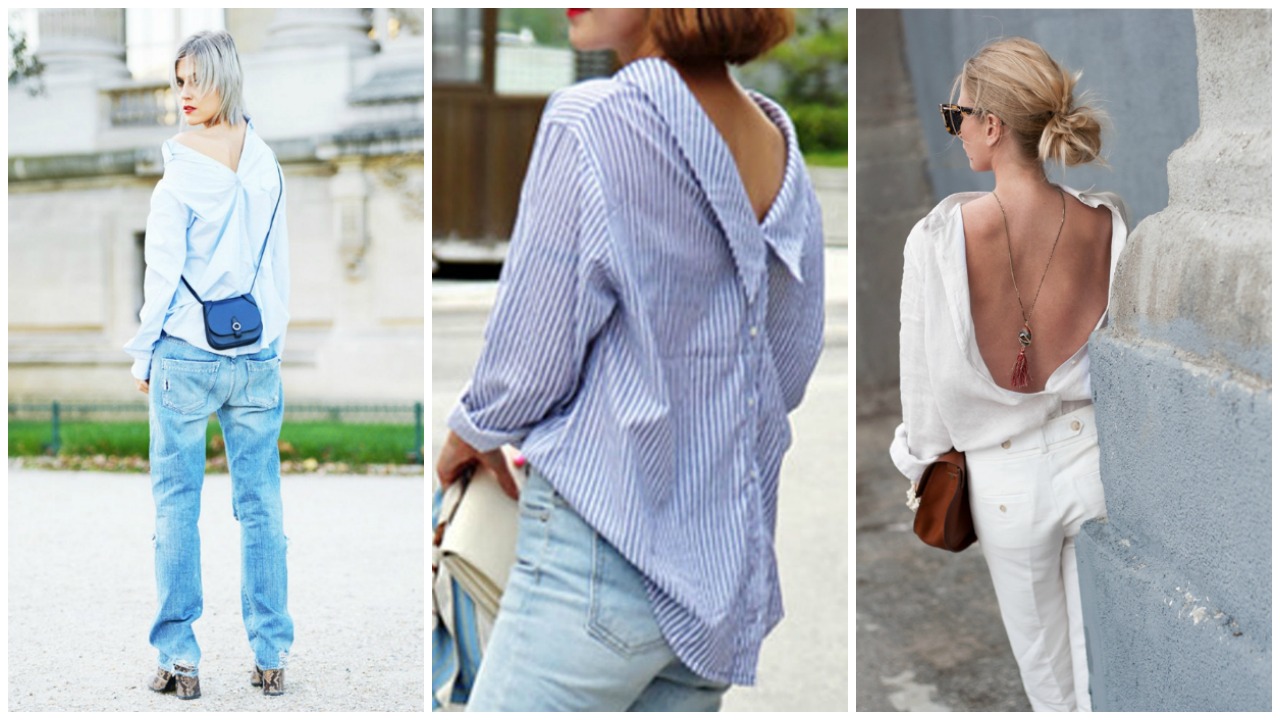 Sahip olduğunuz herhangi bir gömleği birkaç düğmesini açıp, ters giyerek havalı bir sırt dekoltesi yakalayabilirsiniz. Dümdüz beyaz bir gömleği bile bu şekilde kullanarak tarzınıza yepyeni bir yorum katabilirsiniz. İş yerinizde de kullanabileceğiniz bu yöntemle şıklığınızdan ödün vermeyeceksiniz.