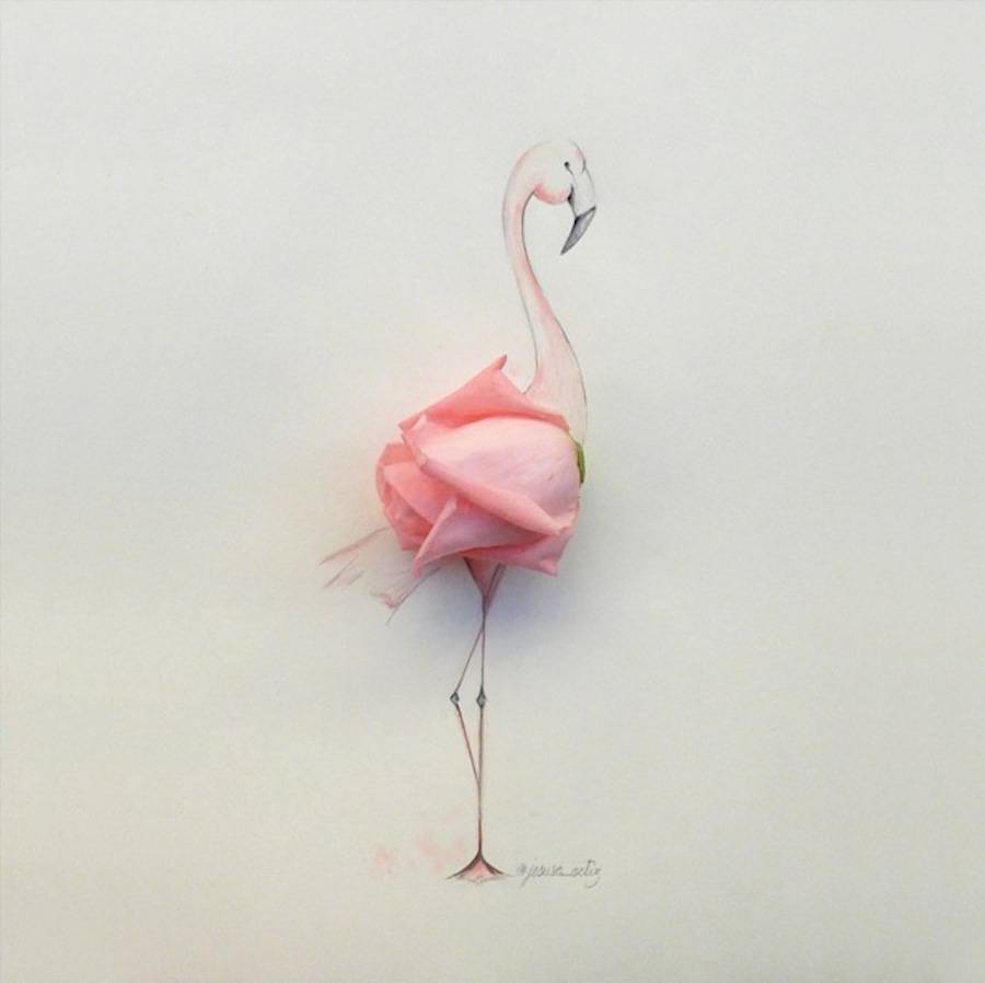 Sahip olduğu objelerden fantazi sahneler yarattığını söyleyen sanatçı, tek bir görselle hikaye anlatabilmenin tek yolunun bu olduğunu söylüyor. Ortis ayrıca, objelerin ve çiçeklerin 3D efekti verdiğini ve illüstrasyonların bu sayede çok daha ilgi çekici gözüktüğünü söylüyor. Sanatçının, içinizdeki çocuğun uyanmasını sağlayacak eğlenceli minimalist çalışmalarına mutlaka göz atın: