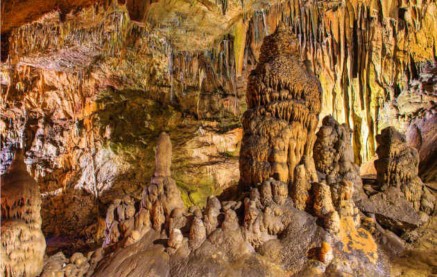 Türkiye’nin doğal güzellikleri deyince akla gelen en önemli yüzey şekillerinden biri de mağaralar. Alanya’ya sadece 3 km mesafede bulunan bu ilginç mağara, ilk bakışta uzayda geçen filmin platosu gibi görünüyor. Özel olarak tasarlanmış gibi duran sarkıt ve dikitlerle süslü olan Damlataş Mağarası sadece güzelliğiyle değil, astım ve bronşit gibi rahatsızlıklara iyi gelmesiyle de ünlü.