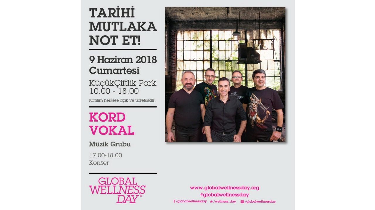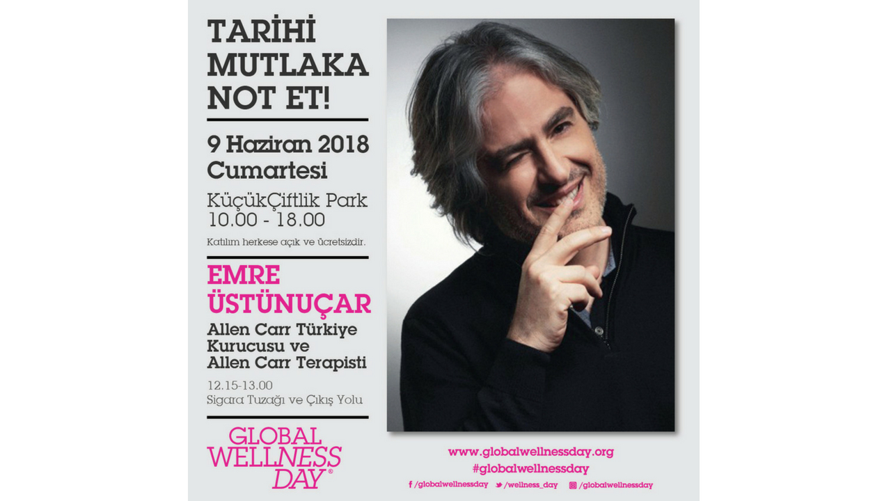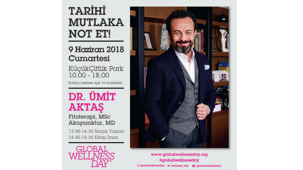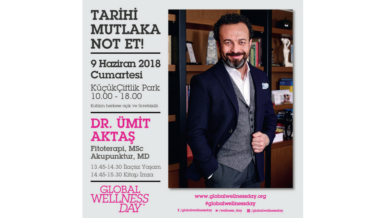 9 Haziran 2018 Cumartesi günü Global Wellness Day yedinci defa kutlanacak ve bu kutlamalar dördüncü defa dünya çapında gerçekleşecek. Etkinlik KüçükÇiftlik Park’ta düzenlenecek. GWD kurucusu Belgin Aksoy Berkin, “Bir gün tüm yaşamınızı değiştirebilir” sloganıyla 86 Küresel İyi Yaşam Elçisi, 3 danışman ve 23 ana destekçiden oluşan bir uluslararası ağa ilham verdi ve bu yıl 100’den fazla ülkede ve 4 binden fazla noktada ücretsiz iyi yaşam etkinlikleri düzenlenmesine ön ayak oldu.