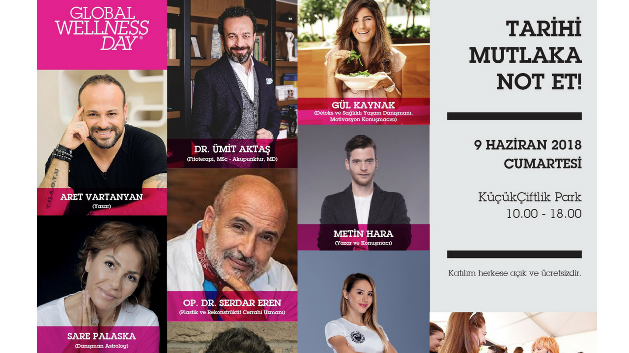 9 Haziran 2018 Cumartesi günü Global Wellness Day yedinci defa kutlanacak ve bu kutlamalar dördüncü defa dünya çapında gerçekleşecek. Etkinlik KüçükÇiftlik Park’ta düzenlenecek. GWD kurucusu Belgin Aksoy Berkin, “Bir gün tüm yaşamınızı değiştirebilir” sloganıyla 86 Küresel İyi Yaşam Elçisi, 3 danışman ve 23 ana destekçiden oluşan bir uluslararası ağa ilham verdi ve bu yıl 100’den fazla ülkede ve 4 binden fazla noktada ücretsiz iyi yaşam etkinlikleri düzenlenmesine ön ayak oldu.