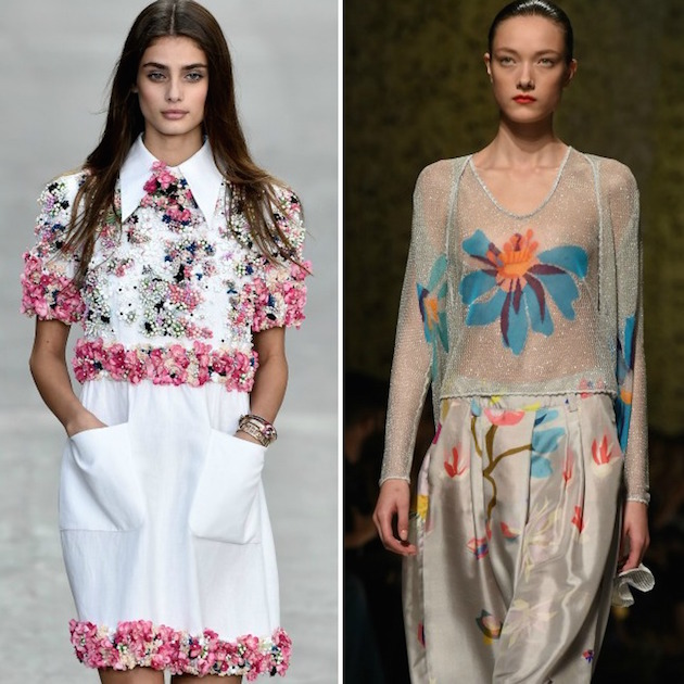 Soğuk ve uzun bir kışın bitimini kutlamak için çiçeklerden daha iyi bir yol düşünülemez. Missoni (sağda) ve Chanel (solda) modelleri, bahar koleksiyonunun narin çiçek bezemeleriyle ve doğa temalı baskılarıyla pistlerde çiçek açıyor. Bu bahar, gardırobunuza çiçek baskı ve desenleri ekleyerek siz de trendleri yakalayabilirsiniz.