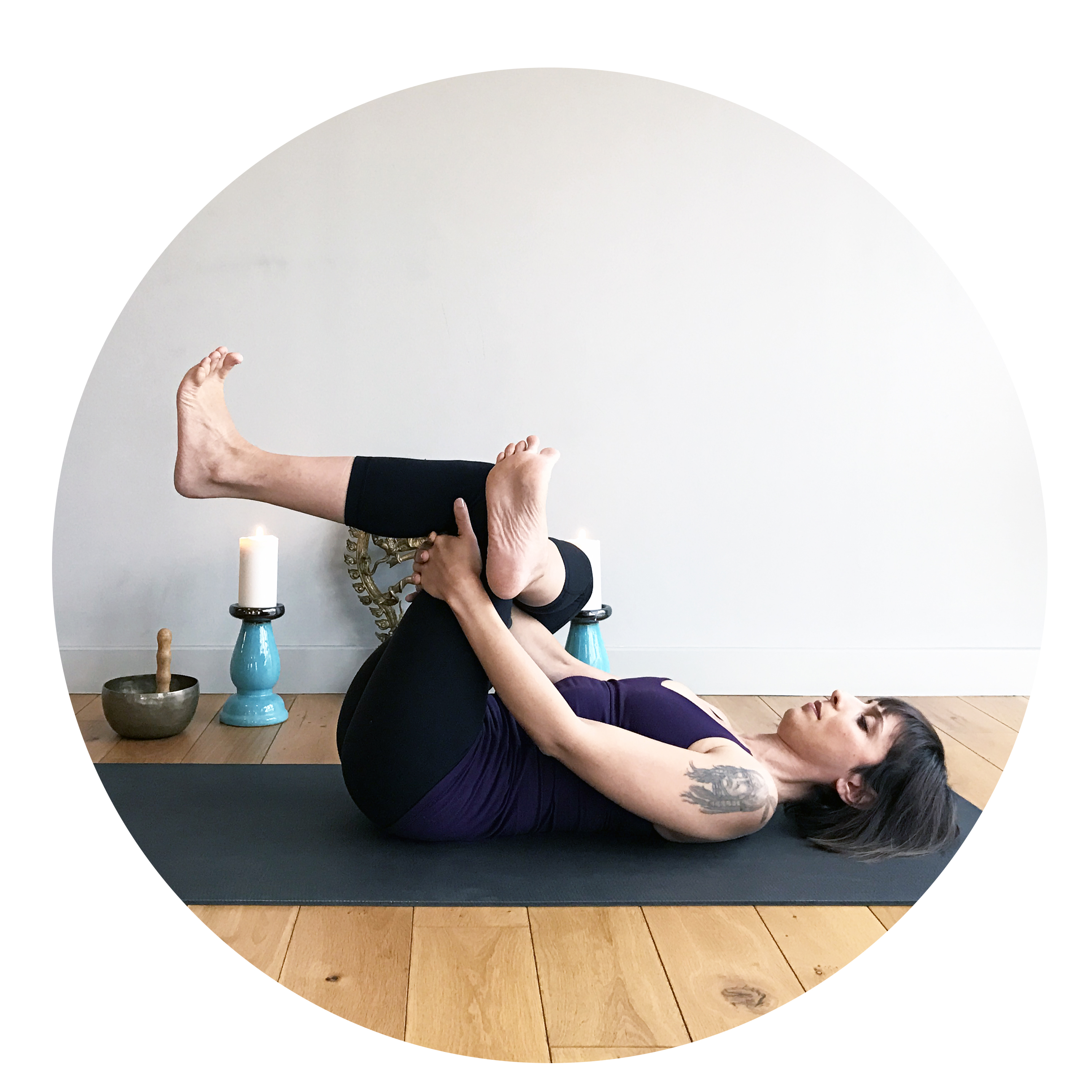 Bu poz kalçaları güvenli ve etkili bir şekilde esnetmeye yardımcı olur. Sağ ayak bileğini sol dizin üzerine yerleştirip, sağ elinizi ortadaki üçgen boşluktan geçirin. Sol ayağı da kaldırıp, ellerinizi sol bacağın arkasında örün. Kalçaların hizasını bozmadan sol bacağı kendinize yaklaştırmayı sürdürün ve ayakları aktif tutmaya devam edin. Başın arkası yerde, omuzlar rahat olsun.