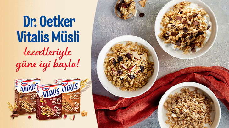 Siz de Dr. Oetker Vitalis’in Multi Meyveli Çıtır Müsli, Bal Bademli Çıtır Müsli ve Sütlü-Bitter Çikolatalı Çıtır Müsli çeşitlerinden dilediğinizi seçebilir, güne en sevdiğiniz lezzetle harika bir başlangıç yapabilirsiniz.