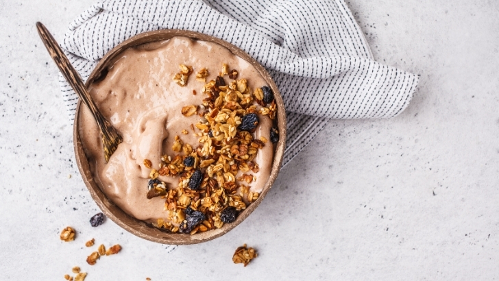 - Elde ettiğiniz smoothie karışımını bir kaseye aktarın ve kahvaltılık bowl için tabanı hazırlayın.
