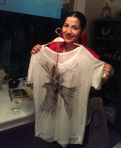Çok seviyorum Mevlevi düşünceyi. Konya’ya da gittim Şeb-i Aruz’a. Bir de ben normal bir turist olarak da değil, sufi müzisyen grubuyla gittim. Akşamları onlarla farklı mekanlara gittik, bir anda müzik çalıyor ve bir anda dönmeye başlıyorlardı. Çok değişik bir tecrübe oldu benim için, gerçekten çok güzeldi. Bunları t-shirtlerime de yansıtıyorum ve elimde hiç kalmıyor. Ben böyle bir ilgiyi hiç beklemiyordum. Başta denedim acaba nasıl olur diye. Ama yapıyorum t-shirtü ve anında gidiyor. O kadar çok sattım ki bu t-shirtlerden.