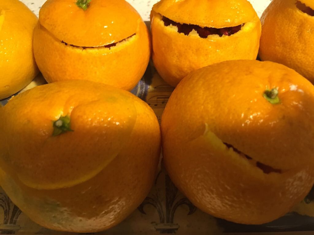 - Bir kaşık yardımı ile mandalinaların içlerini çıkartıyor bir kaba aktarıyoruz.