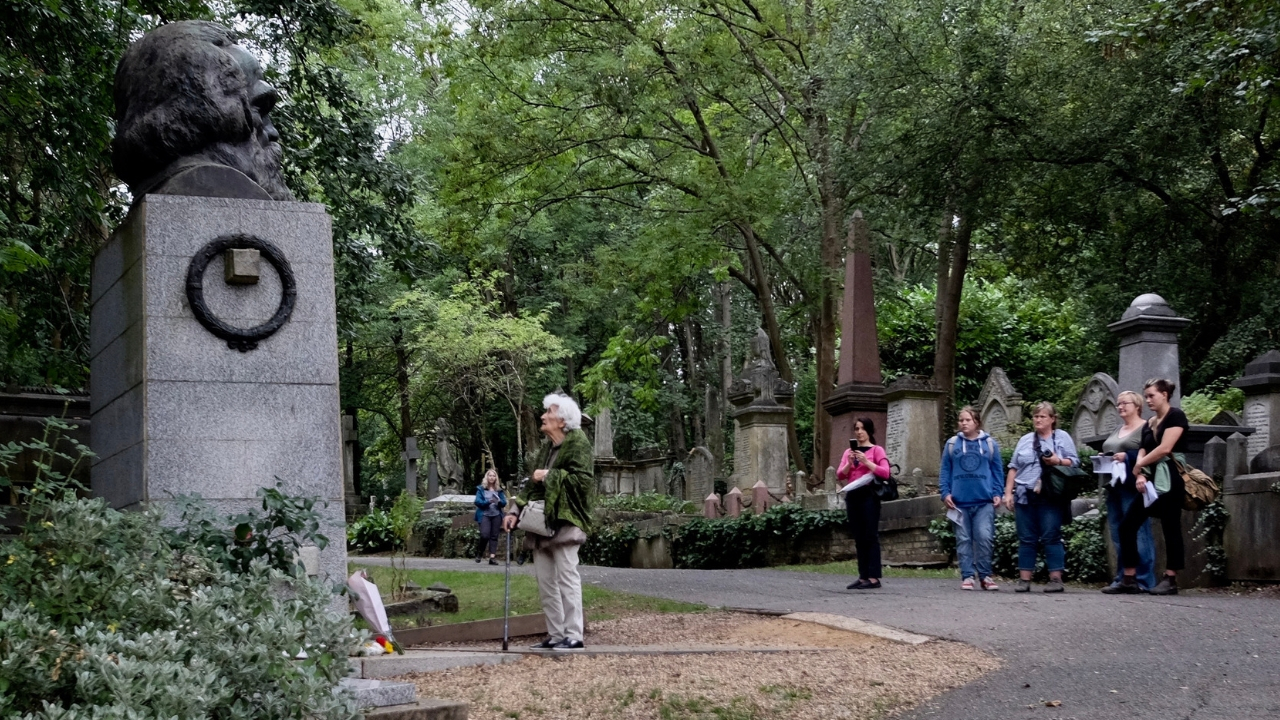 Doğu kanadında vefat etmiş ünlü birkaç ismin mezarı var. Bu kanadın en ünlü rahmetli konuğu 1883’te vefat eden Karl Marx. Marx’ın mezarını bulmakta zorlanmayacaksınız, dev büstüne mezarına hediye olarak turistin birinin bıraktığı küçük bir çekiç eşlik ediyor. Rahmetli, mezarlığa giriş ücreti ödendiğini ve hatta Batı kanadında daha yüksek fiyatlı özel turların düzenlendiğini neyse ki bilmiyor. Giriş yetişkinler için 4 Pound, 18 yaş altı çocuklara bedava. Hatta okul grupları da mezarlığa geziye geliyor.