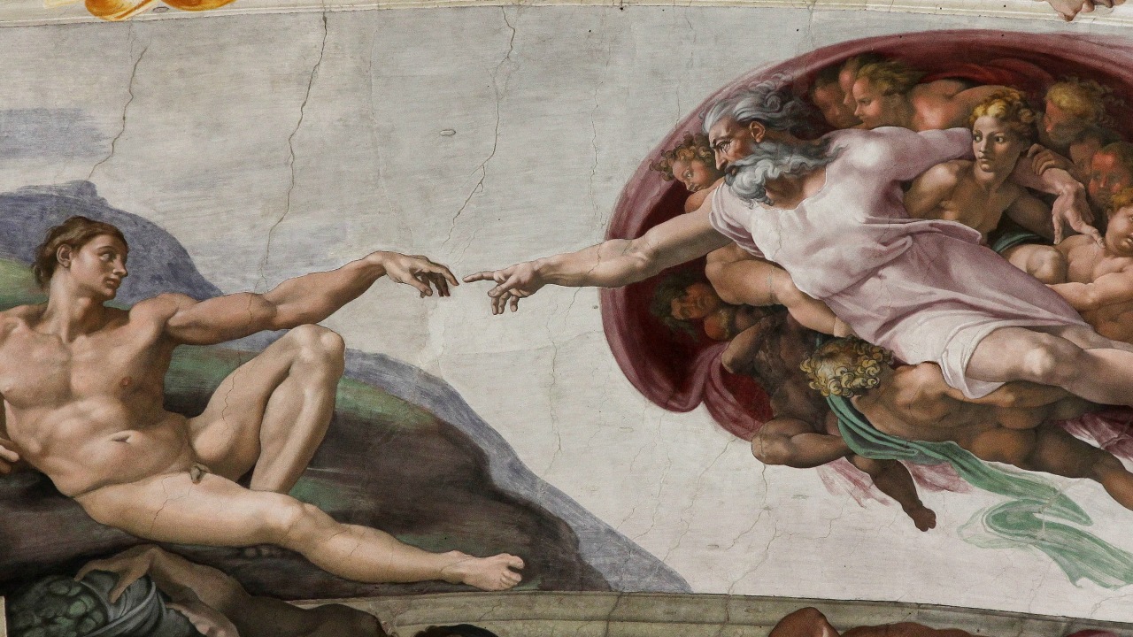 Tanrı, beynin duygusal merkezi ve muhtemelen insan ruhunun anatomik yerleşkesi olan limbik sistem üzerinde oturuyor. Sol kolunun altında bulunan üzgün melek çizimi, PET görüntüleme tekniği ile üzgün düşünce sırasında aktifleşen beyin bölgesinde yer alıyor. Tanrı’nın sağ kolu ise beynin en yaratıcı ve benzersiz bölgesi olan ön beyinden (prefrontal korteks) Adem’e uzanmış şekilde resmedilmiş. Tanrı’nın eli henüz Adem’e dokunmuyor; fakat Adem sanki aralarındaki boşluktan yaşam elektriği sıçramış gibi canlı gözüküyor. Tanrı, Michelangelo’nun sonelerinden birinde yazdığı gibi Adem’e en yüceyi ve ileriyi planlaması için idrak kabiliyeti veriyor.