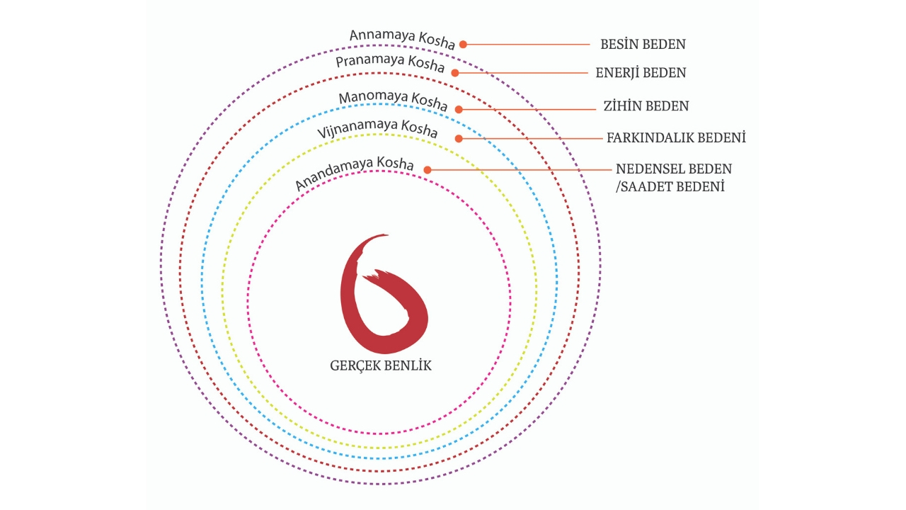 Bu 5 katman çoğunlukla birbirini ve ruhu saran, iç içe geçen ve örten “soğan kabukları” olarak tariflenir. Yoga felsefesinde ise, her bir katman üzerine yapılan çalışmanın, kişiyi kendi özüne ve gerçek benliğe yaklaştırdığına inanılır.